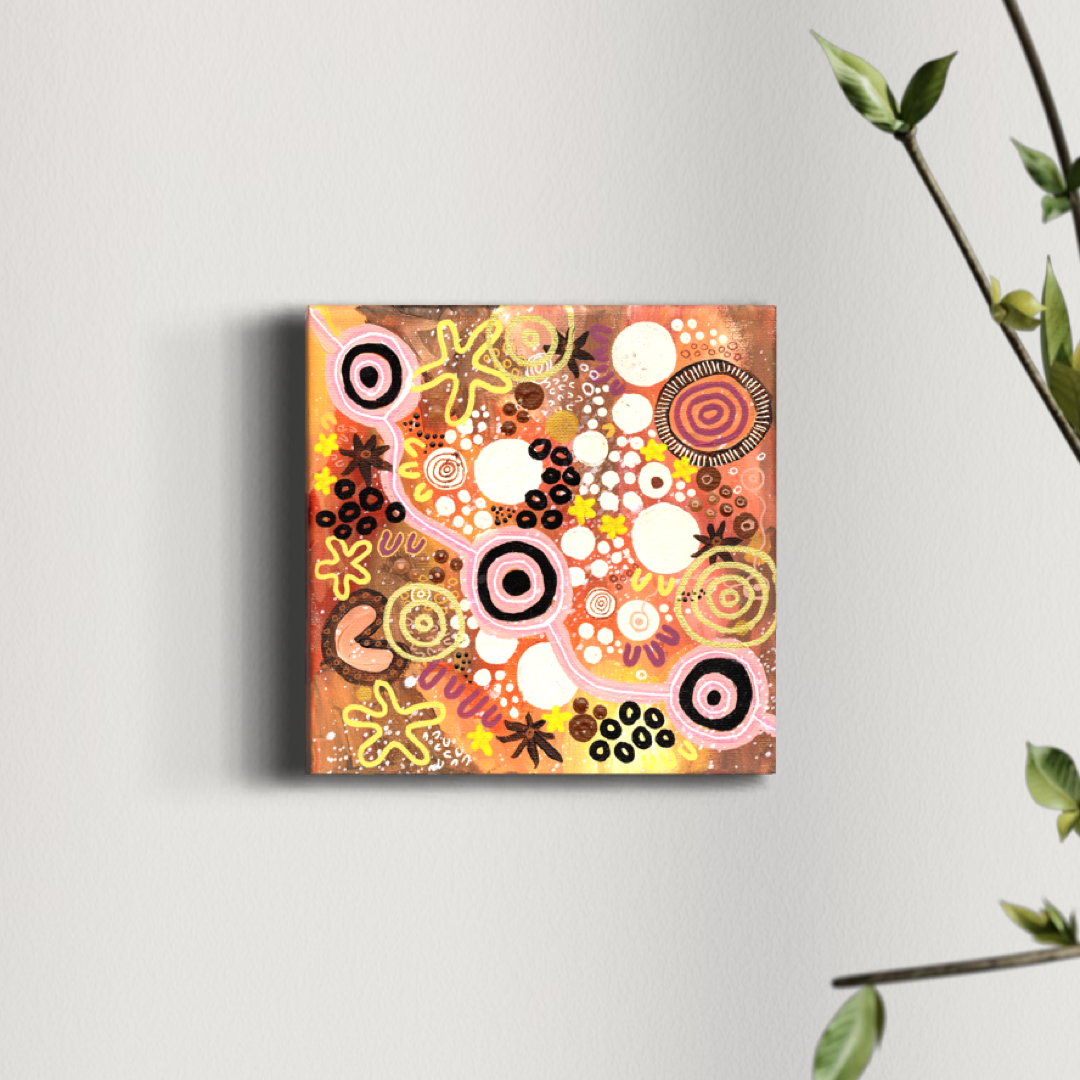 "Pathways" is an exquisite piece of Aboriginal artwork I created that encapsulates the idea of navigating the journey of life without always knowing which path to take. This artwork invites the viewer to embrace the uncertainty, anxiety, joy, and love that come with the journey.